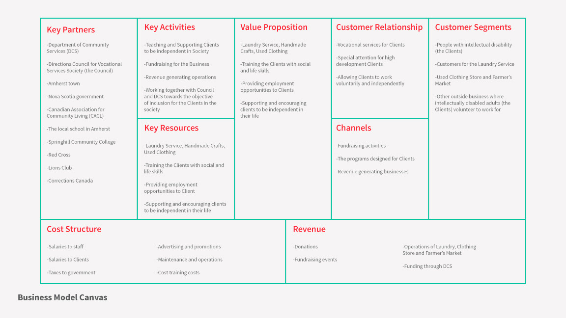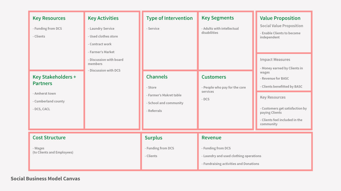 Social Business Model Canvas by Tandemic was used in this project. Due to unconventional nature of this business, there were limitations to widely used Business Model Canvas. Social Business Model Canvas, which is proven good tool for non-profit organizations, allowed us to clearly study the value proposition for beneficiaries and customers and also measure the social impact. Beneficiaries here are the Clients.