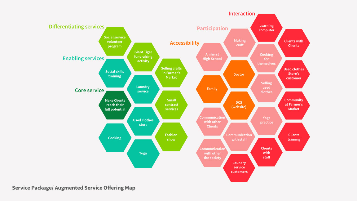 An iteration of Service Package/ Augmented Service Offering Map to analyse service offerings by Bridge Adult was done. Service Package shows core service of Bridge Adult. Enabling services are essential services based on core service and enhancing services differentiate Bridge Adult from their competitors.