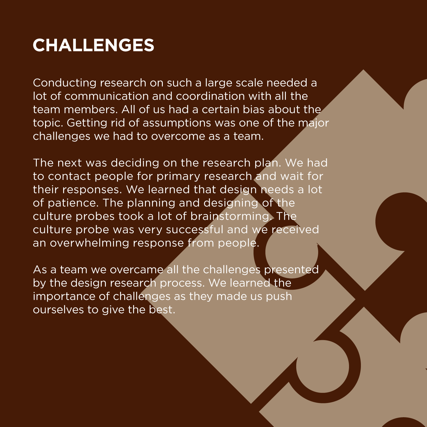 For the past ten weeks we have been on a beautiful journey of research and learning. We learned basics like ethnography and cultures, how to study people, their behavioral patterns and phenomena without disturbing the atmosphere or making people uncomfortable.