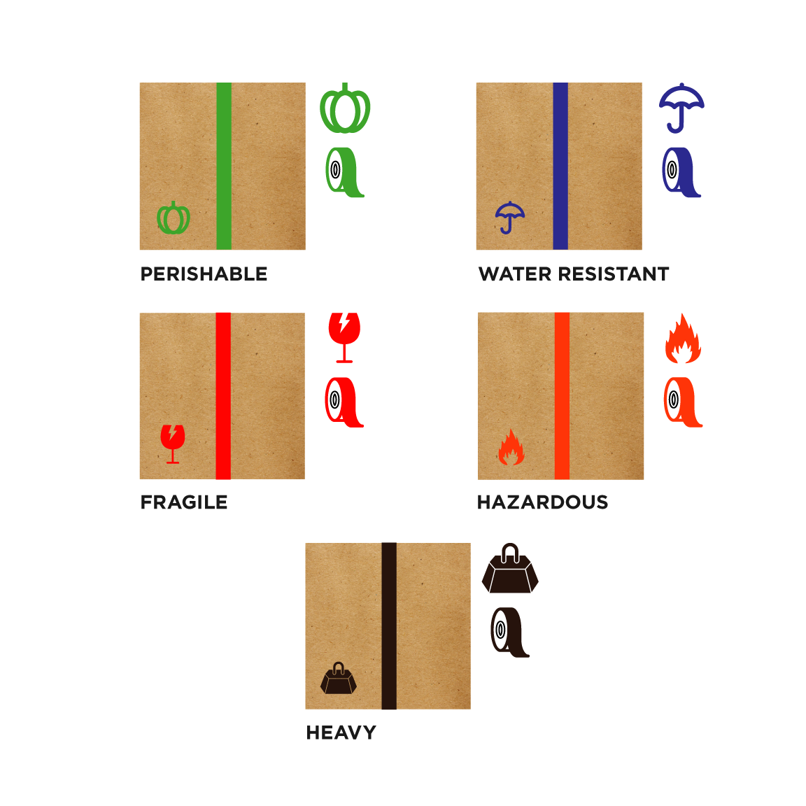 This offering provides different icons in colors identifying with the goods making it easier for arranging and storing packages at the warehouse. The offering includes carefully designed graphics