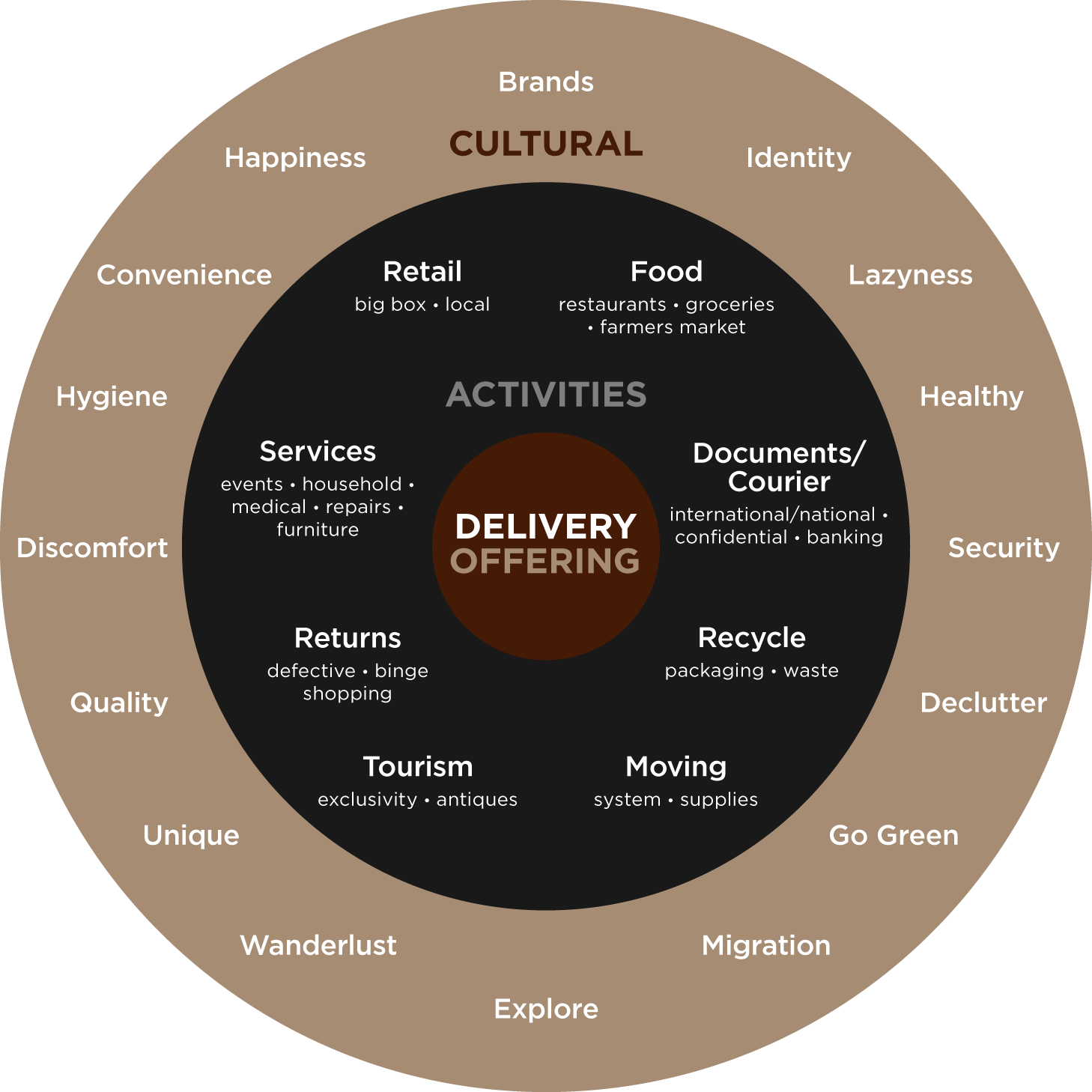 We identified the various cultural factors affecting the type of services people use. This mode helped us identify opportunities related to “delivery services” and the reasons relevant to the process of choosing the service and type of delivery.