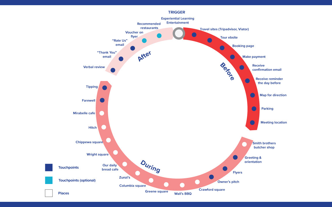 Participate in local tour of the city, make observations, analyse the service after finishing the tour using service design methodologies and present findings/ propose solutions to improve the service.