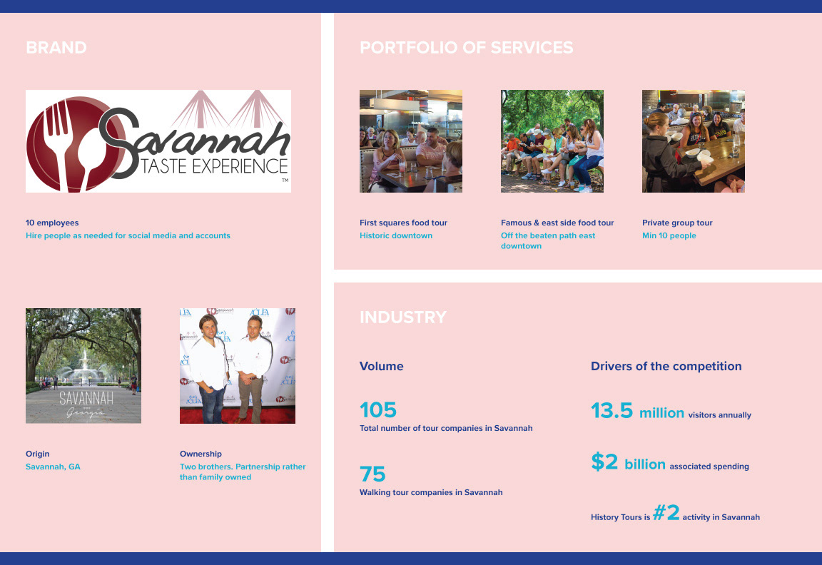 Savannah Taste Experience is a local company which offers multiple historical food tours in downtown Savannah. Below picture illustrates facts about Savannah Taste Experience and historical tour industry in Savannah.