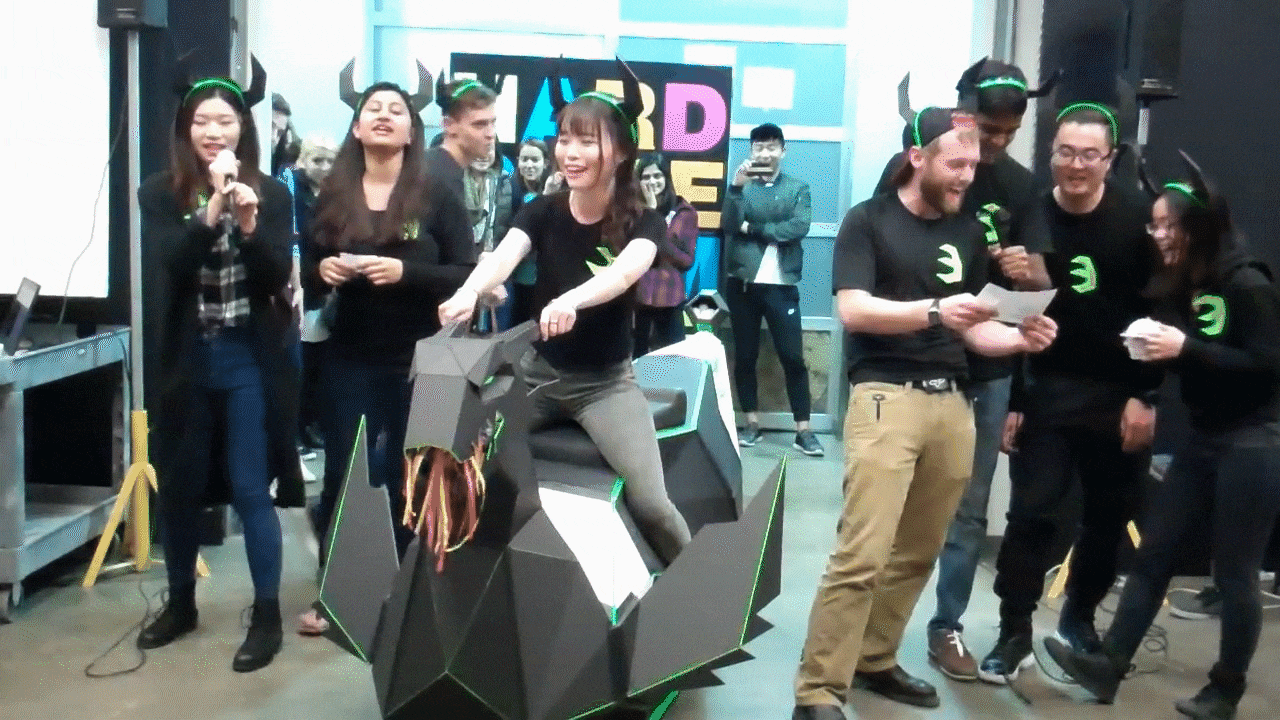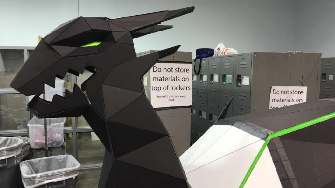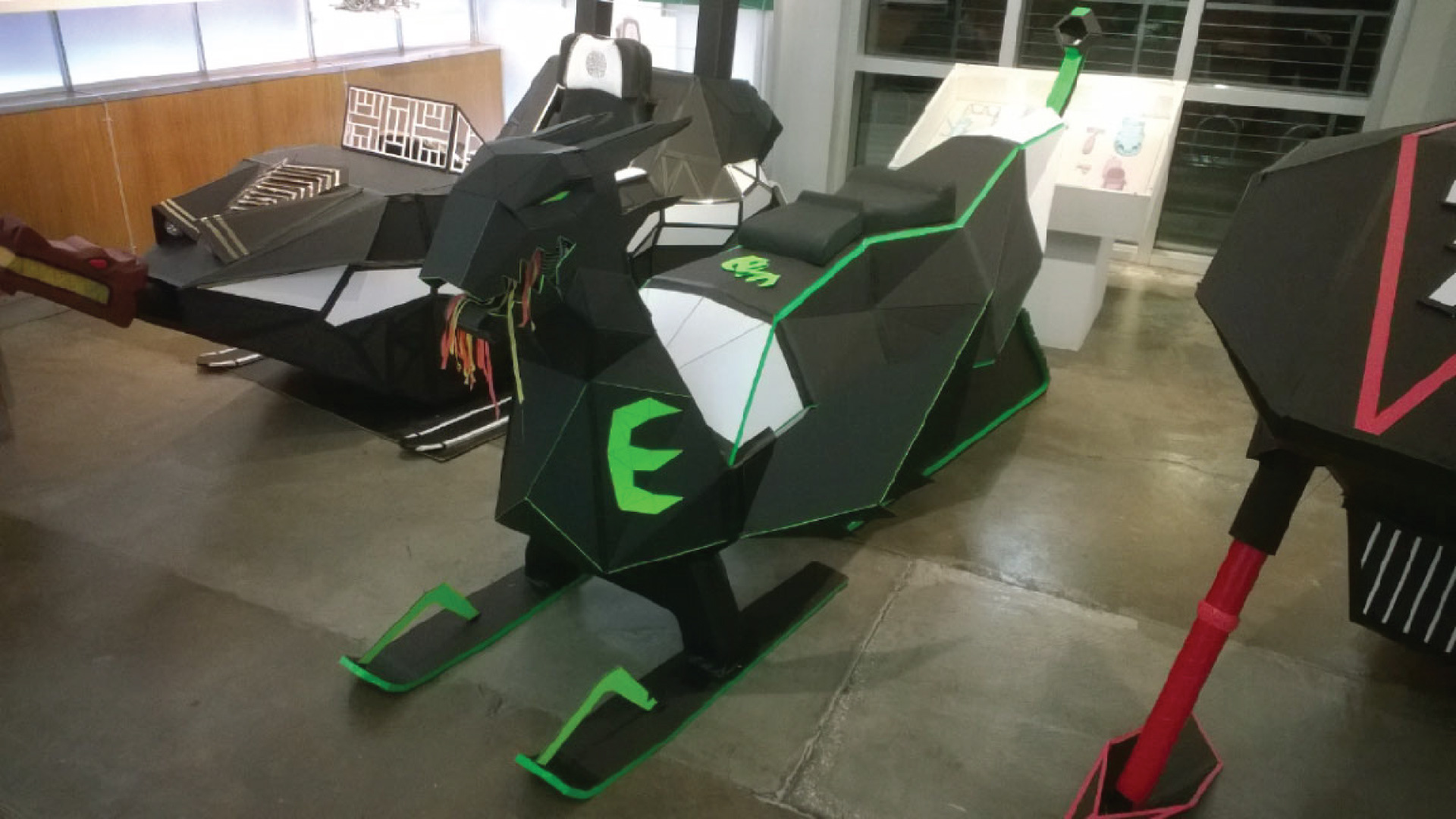 Using only foam core and other simple materials like cardboard, paper, glue and duct tape, the challenge for the team of eight was to create a life size snowmobile (that someone could sit on) within two weeks.
